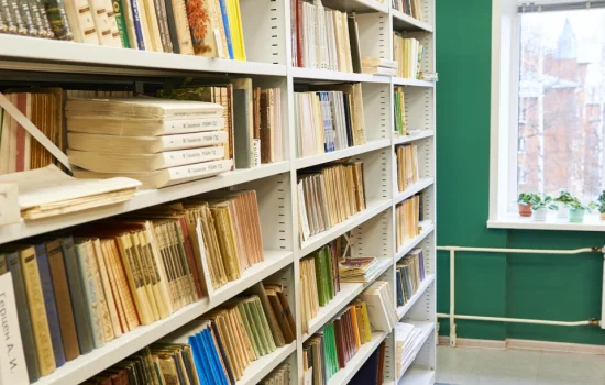 В помещении абонемента учебной литературы установлены металлические стеллажи для библиотеки, на полках которых удобно размещаются различные издания: справочники, учебники и книги. Такое продуманное хранение литературы позволяет быстро и легко находить нужные издания, что значительно упрощает работу библиотекарей и облегчает доступ читателей к необходимой информации.