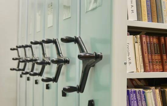 В зависимости от поставленных задач мы используем в проектах различные серии стеллажей, а так же их модификации. Так, например, при потребности, мы устанавливаем фальшпол в конструкции стеллажей серии «Л», «Т» и «Актив». Серии на усиленной мобильной базе («Т» и «Актив»), со стальными колесами и рельсовой системой, оптимальны для максимального заполнения пространства хранилища книг благодаря повышенной несущей способности и возможности установки стеллажей высотой до 3,5 м. Они хорошо подходят для хранения документов, к которым редко обращаются: издания фонда редких и ценных книг, исторические и мемориальные коллекции и т.п.
