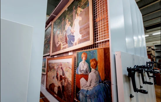 Раздвижные стеллажи с сетками - это удобная система хранения картин в фондохранилище музея, которая позволяет защитить их от пыли, грязи и повреждений и сэкономить площади.
