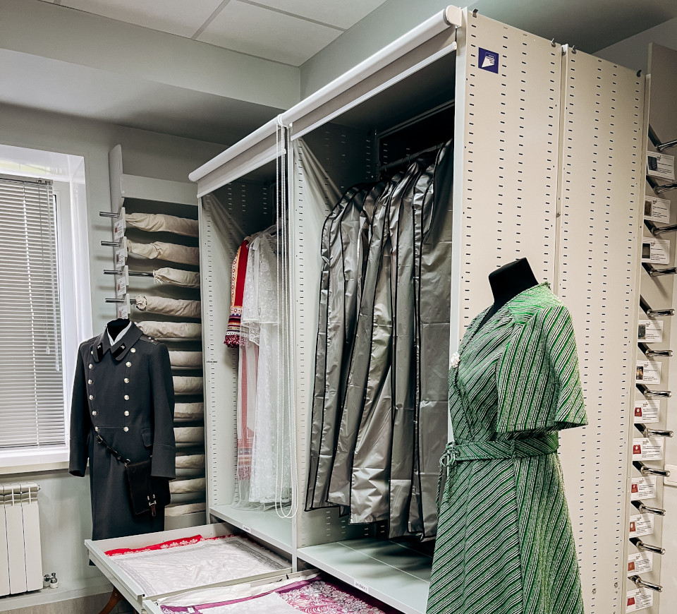 Изготовим стеллажи для хранения костюмов и платьев в костюмерной киностудии, театральном складе или в фондах музея с доставкой с завода производителя в города Калининградской области и России.