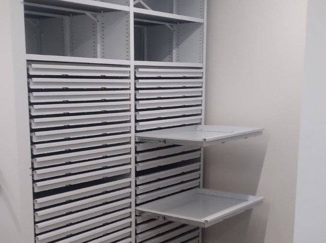 Размер ящиков может быть подобран под различные форматы от А4 до А0 и А1, что позволяет хранить чертежи, карты, схемы и другую конструкторскую документацию как в разложенном виде, так и в рулонах или папках.